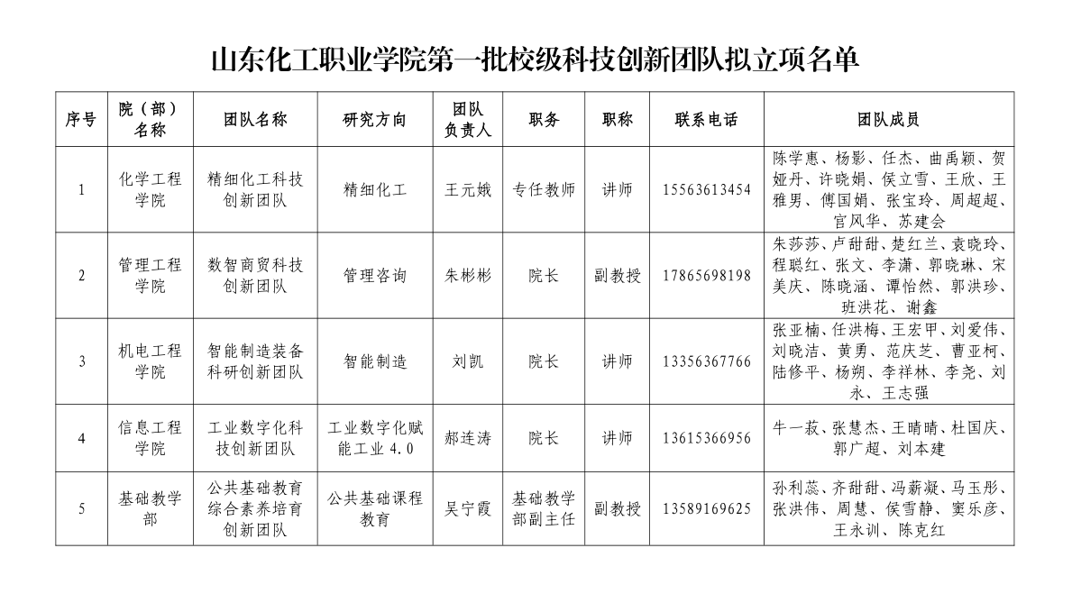 附件:山东化工职业学院第一批校级科技创新团队拟立项名单