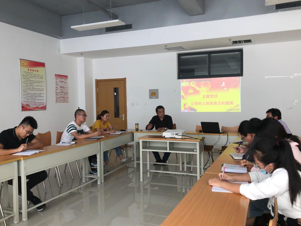 为隆重庆祝中华人民共和国成立71周年,弘扬以爱国主义为核心的伟大民族精神和以改革创新为核心的时代精神,不断强化思想引领和实践养成,进一步贯彻落实好潍坊市委教育工委关于在教育系统组织开展迎国庆深化爱国主义教育系列活动的工作要求,9月23日下午,基础教学部支部委员会于4206会议室以“立德树人就是真正的爱国”为主题开展了9月主题党日活动,支部全体党员和入党积极分子教师参加了活动,活动由党支部书记李爱国同志主持。