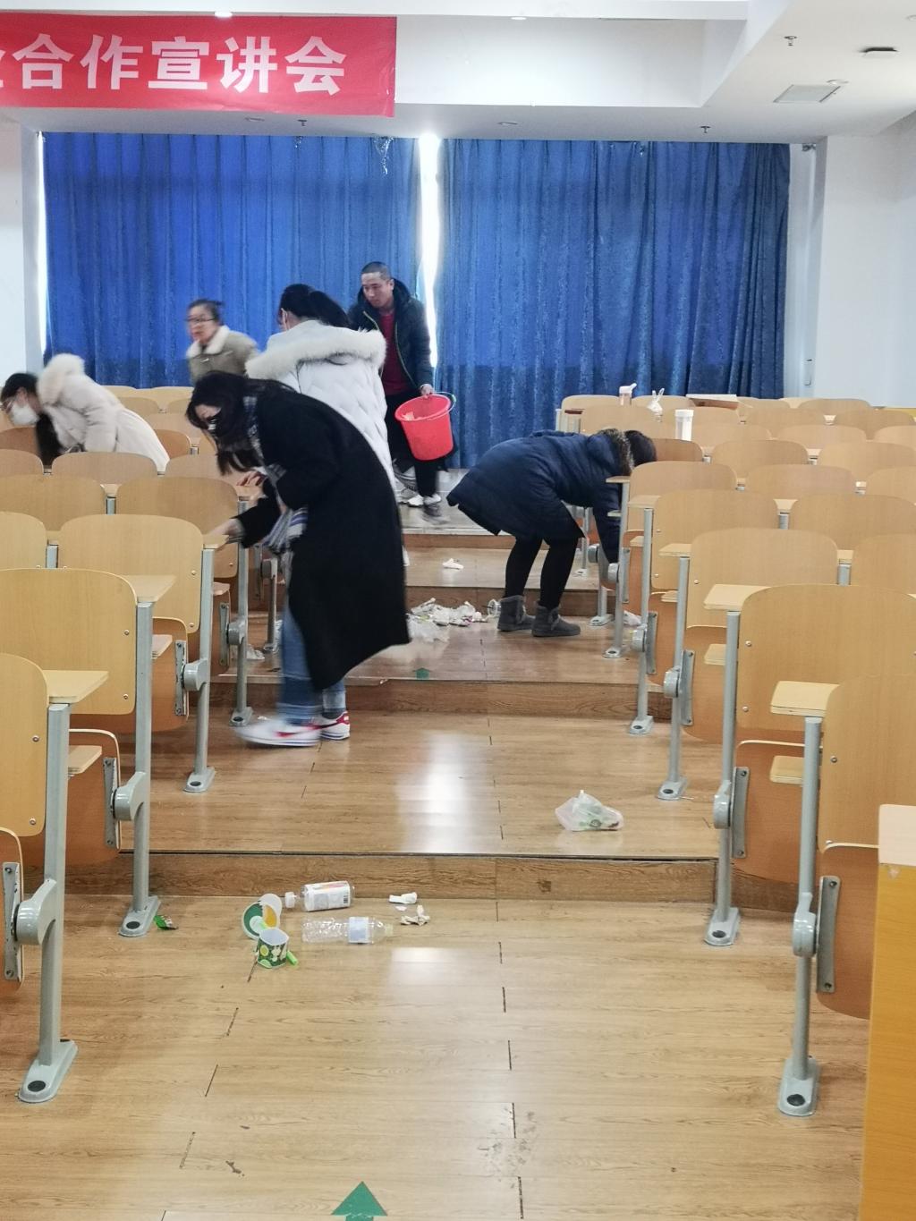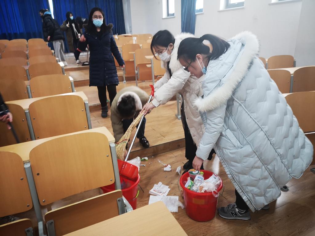 为了不断提高广大党员干部主动参与服务校园建设的意识,全面提升党校学习氛围和环境,按照基础教学部支委会统一安排,12月23日中午党校党员干部培训课开始前,基础教学部党支部党员和入党积极分子共16人在支部书记李爱国的带领下,主动牺牲午休时间,集体前往 1号阶梯教室进行了暖心大扫除。