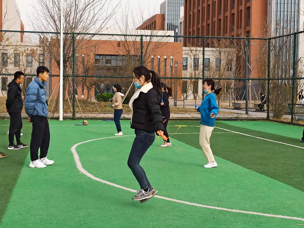 本次比赛项目内容各异,风格迥然,突出了“趣味”与“合作”的主题。此次活动精心设计了踢毽子、乒乓球拍运球以及跳绳三个项目,女教职工们积极参与比赛,男教职工负责裁判,不但是智慧和体力的角逐,还是团结和协作的完美比拼。