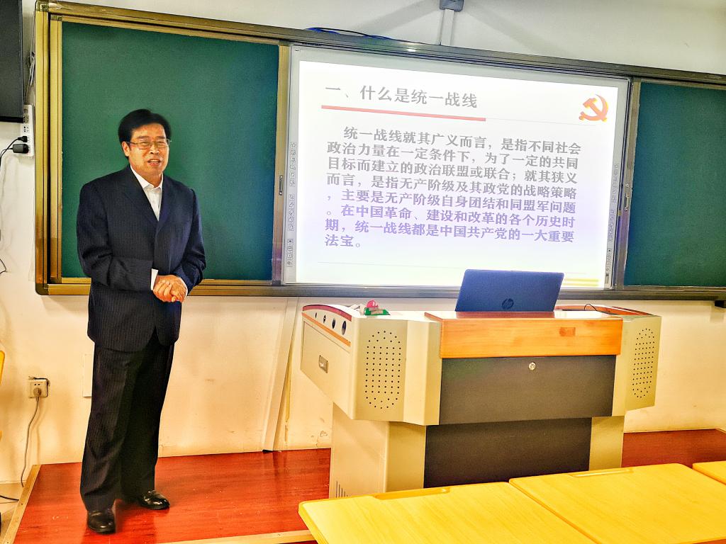 会议第二项议程由马克思主义学院思政课党员教师齐甜甜、葛文杰分别进行了党史讲授。党的十八大以来,习近平总书记高度重视学党史、用党史,多次强调“历史是最好的教科书”,并指出学习党史、国史,是坚持和发展中国特色社会主义、把党和国家各项事业继续推向前进的必修课。这门功课不仅必修,而且必须修好。经两位老师前期精心备课,本次党史教育取得了良好成效。齐老师以“开天辟地”为主题,从党的三大历史分期入手,系统梳理了中国近代的屈辱史和中国人民的抗争史,对中国共产党的创立条件及早年革命活动进行了详细讲解。葛老师以新民主主义革命胜利的三大法宝之一的“统一战线”为主题,深入浅出地讲授了统一战线的由来、含义及我党在历史不同时期有着不同任务、内容及特点的五次统一战线:国民革命联合战线、工农民主统一战线、抗日民族统一战线、人民民主统一战线、爱国统一战线,葛老师号召大家要从统一战线的党史学习教育中汲取携手奋进的智慧力量,继续立足岗位、担当作为,以更较真碰硬的工作态度,更求真务实的工作作风,为学院混合所有制改革发展贡献力量,以优异成绩迎接建党100周年。