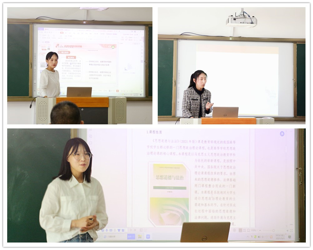 马克思主义学院副院长、基础教学部党支部副书记、副主任吴宁霞,基础教学部副主任沈威以及基础部各教研室主任等担任比赛评委,比赛由马克思主义学院副院长吴宁霞主持。马克思主义学院李涛、孙玲玉、马瑞杰、刘玲、曹江亭、马玉彤、齐甜甜、韩曌旸、于甜甜、石梦琪、侯雪静等11名思政课专任教师参加了比赛。