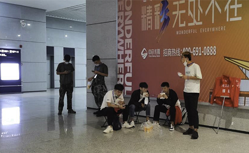 早上6:30,北站的志愿者们抓紧时间吃早饭
