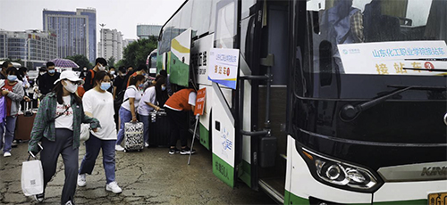 仅有热情还不够,接站工作还需要效率,既要减少新生和家长的等待时间,又不能让车辆空跑,这需要合理的工作流程。在接到任务之后,几位老师就建立了钉钉工作群,给志愿者分了组,明确职责分工。出站口的同学先把新生和家长迎到接待区,测量体温并对行李消毒,然后由引导员带到停车场。每个候车点的老师及时通报人数,当达到一定数量后就会发车,有的直接返校,有的去总站或北站转接,如果人数不多,也会和海事学院的接站人员协调,两校合并发车。因为一直下雨,随车志愿者会通报车号、时间和路线,使其他站点候车人员心中有数,合理安排从接待点到候车点的时间,避免长时间淋雨。一批批的新生和家长迎进来,然后再一批批地送出去,工作忙而不乱、井井有条。