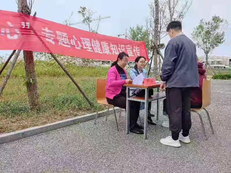 下午14:00在学校餐厅北门开展“逆境携行,你我同心”专题心理健康知识宣传,我校心理健康教育专任教师通过发放宣传资料、精神健康咨询和义诊,向学生普及精神卫生知识、现场为同学们答疑解惑,让学生与心理知识零距离接触。