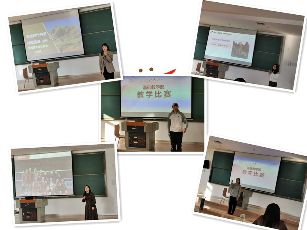 此次正式比赛是在各教研部举办的遴选赛的基础上,选出各教研部成绩优异的五位教师来参加,其中体育教研部两位教师,语数外教部一位教师,思政教研部两位教师。比赛的评委由基础教学部吴宁霞副主任、沈威副主任及各教研部主任来担任,各位评委本着公平公正择优的原则对五位参赛教师的教学比赛内容进行了评,并对每位参赛教师的教学比赛内容做了中肯的评价,使参赛教师明确自己教学内容需要改进的方向。最终成绩优异的教师会代表基础教学部参加学校组织的青年教师教学能力比赛。