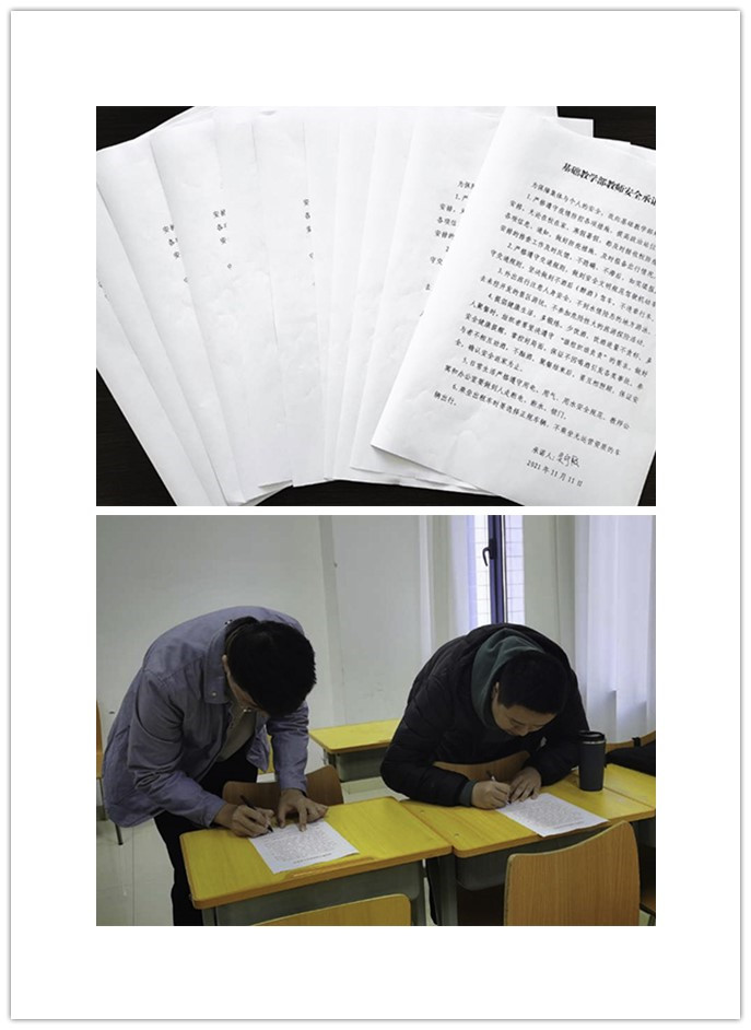 11月11日,基础教学部全体在校教师在《基础教学部教师安全承诺书》上郑重地签上自己的名字。