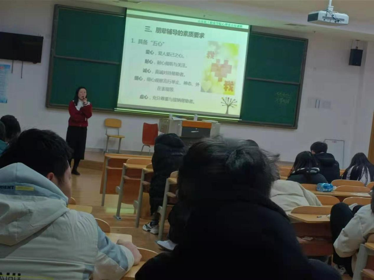 本次心理委员理论培训由基础教学部心理教研室徐婧婧老师讲授。内容主要包括心理委员的职责、义务及工作要求;大学生常见心理问题识;朋辈心理辅导和倾听的技巧四个方面。徐老师系统的讲解了心理委员的角色职责,帮助心理委员能够发现学生中出现的心理异常现象,并及时向辅导员和学校心理老师反映,使其尽快解决。让心理委员能够帮助有心理困难的同学及时前往心理咨询室接受咨询,加强对接受咨询学生的跟踪及反馈,协助心理老师开展心理普查等工作。