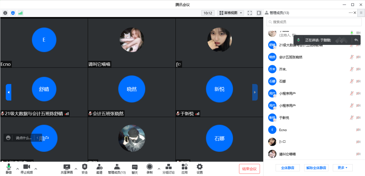 根据前两期活动经验,第三期云端团辅举行方式我们积极进行了调整,确定主题后,以二级学院为单位,同一时间段同时开展四场腾讯会议,并将每场会议人数控制在20人以内,确保每一个同学都能有更好的参与体验。每组仍然各由一位心理老师和一位思政老师共同主持,在做好心理疏导的同时,对同学们进行思想引导。