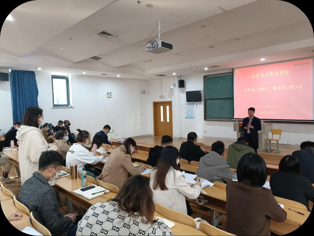 为促进我校心理健康教育工作水平和能力提升,10月27日,潍坊市精神卫生中心心理咨询中心主任孟亮亮一行应邀来我校,开展“全环境立德树人”主题讲座,学校全体辅导员参加了学习。