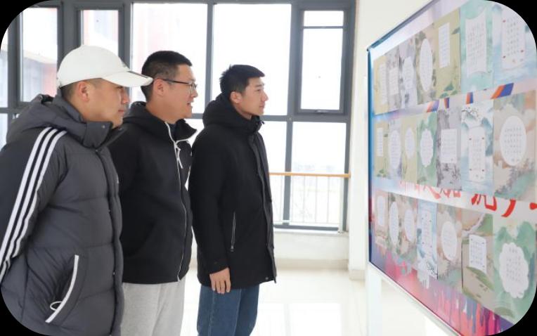 本次展览作品内容以习近平总书记金句、中国古典诗词、师德名言警句等为主。作品中有的字体工整对仗,有的笔走龙蛇,有的含蓄内敛,有的豪放洒脱,吸引了广大师生驻足欣赏。