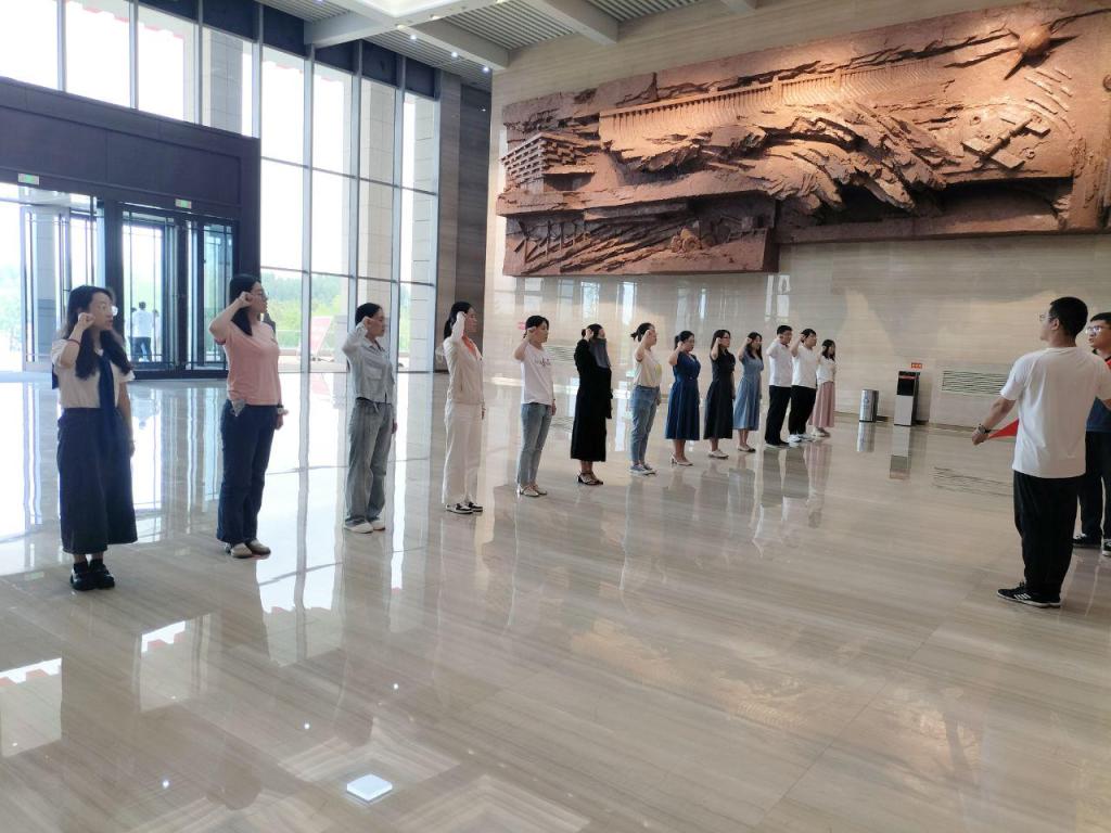 进入场馆,在肃穆庄重的“铁肩”雕塑群前,护旗手手持神圣的中国共产党党旗,全体思政教师列队整齐,右手握拳,一字一句跟诵入党铮铮誓词。教师们在宣誓中再次重温中国共产党的性质、目标、宗旨、任务、纪律等,再次坚定了对共产主义理想必须秉持的信心信念。