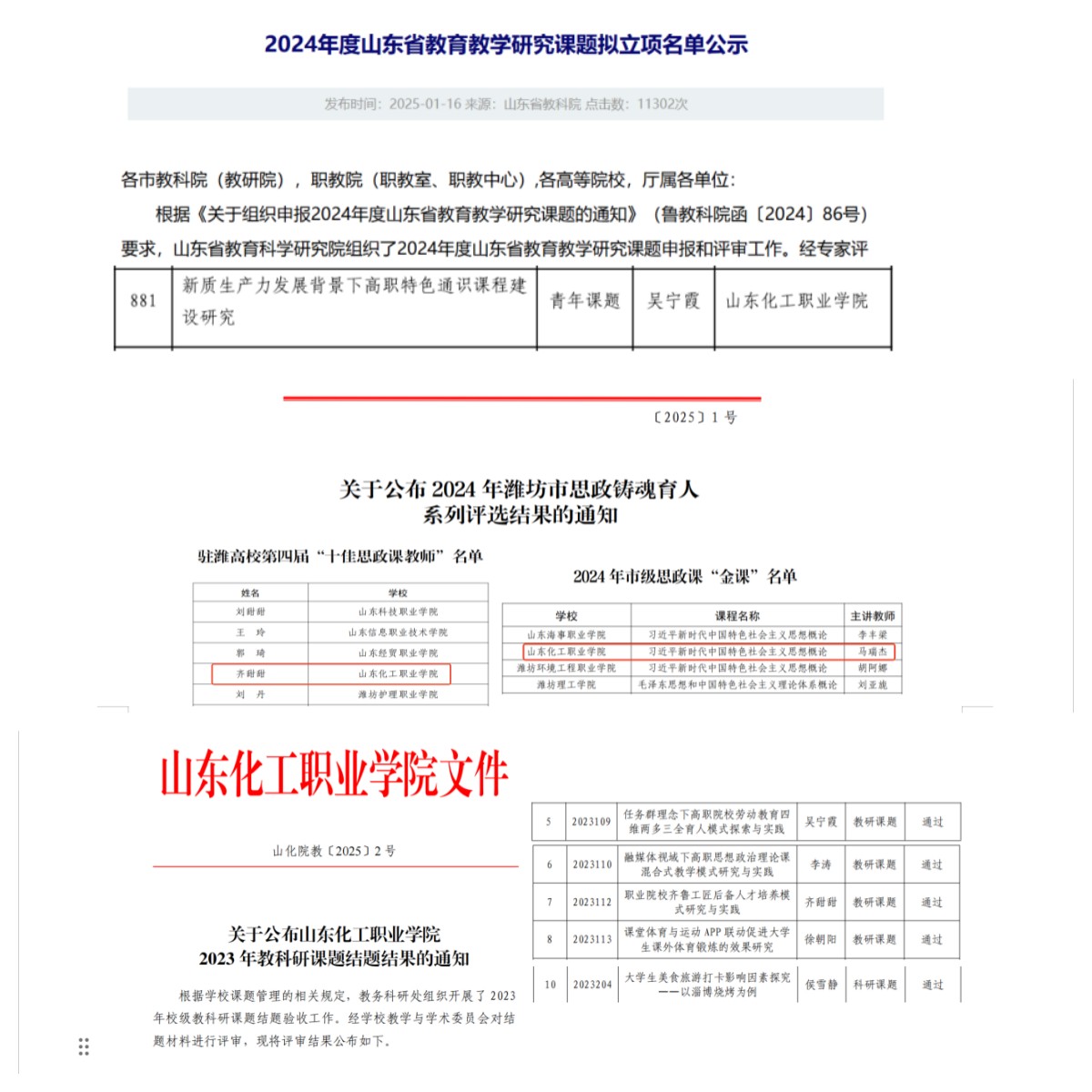 1月16日,山东省教育科学研究院发布《2024年度山东省教育教学研究课题拟立项名单公示》,我部吴宁霞老师主持的青年课题《新质生产力发展背景下高职特色通识课程建设研究》成功立项。