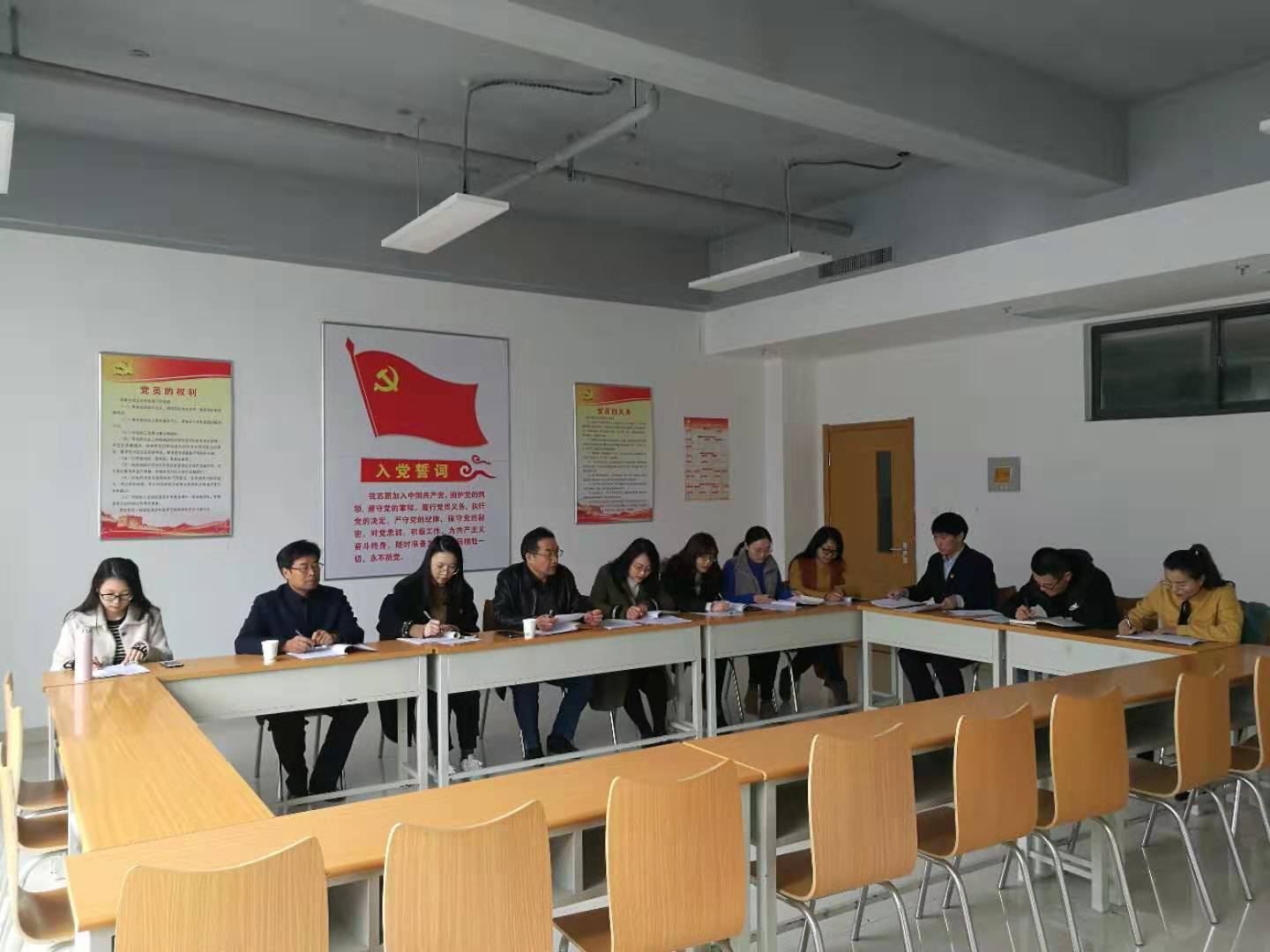 会议由党支部书记李爱国同志主持,学院党委组织部领导到会指导,基础基础学部全体党员干部参加会议。