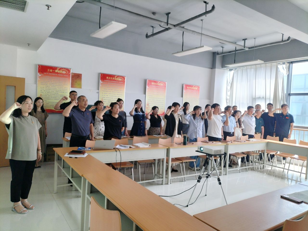 5.重温入党誓词。由张洪伟领誓,全体党员宣誓,重忆入党初心。